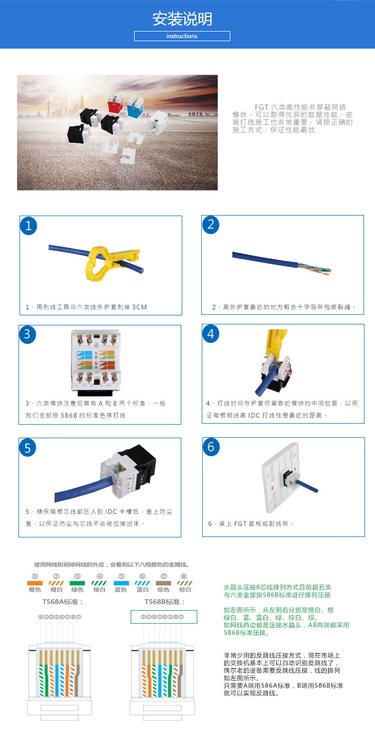 國際標(biāo)準(zhǔn)品質(zhì) FGT-M6-1M 六類非屏蔽網(wǎng)絡(luò)跳線